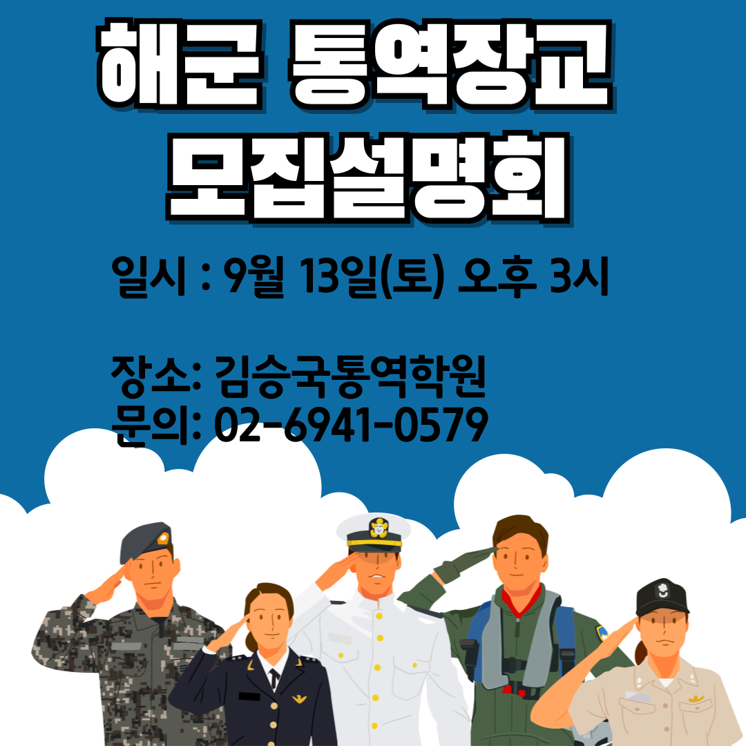 해군 통역장교 모집설명회 9월 13일(토) 오후 3시
