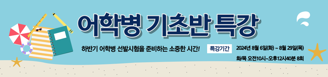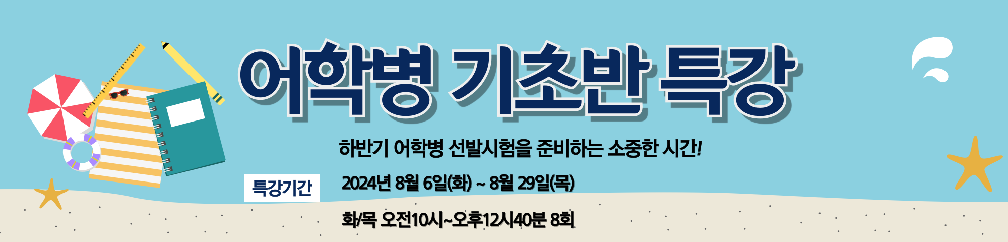 그 전에 미리 통번역 학습이 처음이시라면 어학병 기초반 특강이 8월에 개강할 예정이니 참고해주시기 바랍니다.