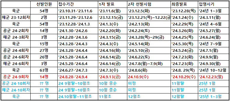 (정확한 일정은 병무청 선발공지가 나오면 확정이 됩니다.)
