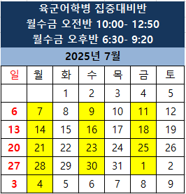육군어학병 2025년 8월 선발시험 대비 육군어학병 집중대비반 수업이 7월 7일(월)에 개강합니다.