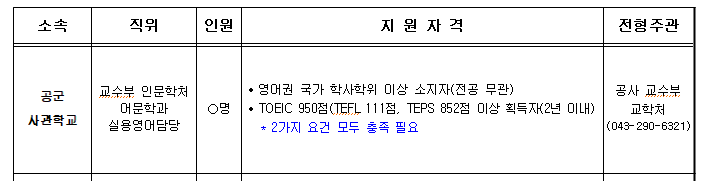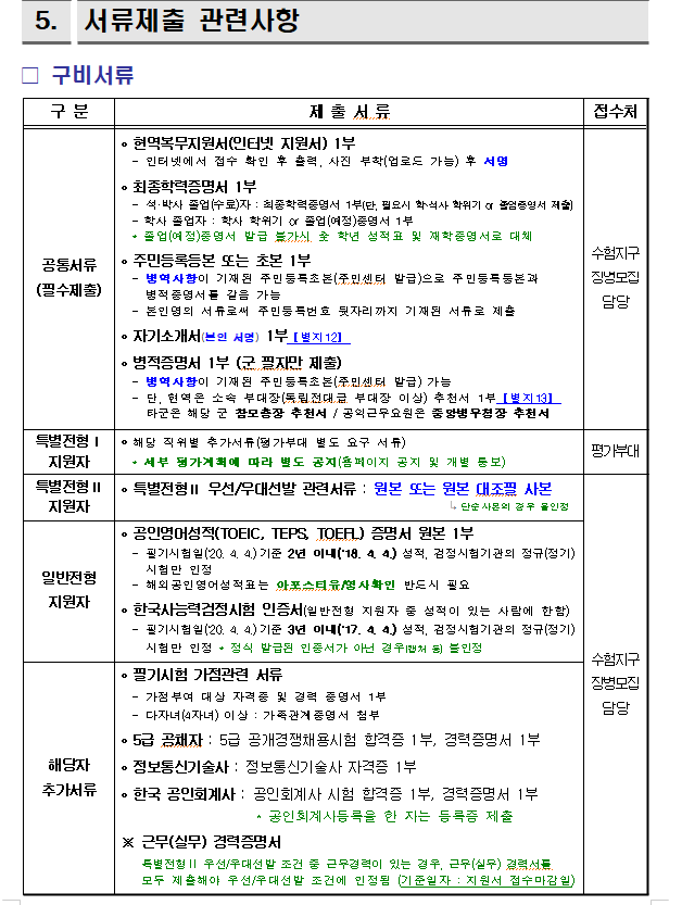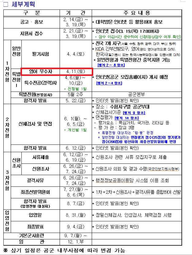 * 특별전형 관련 문의처: 공군본부 인력관리과 042-552-1422