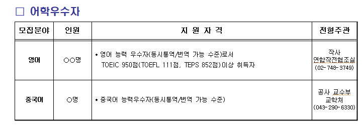 * 어학병은 공군의 전 특기로 분류됩니다. (대공포운용병, 항상기상관측병, 정보체계병, 항공기정비병, 항공보급병, 시설병, 회계병, 정보병, 헌병 등)