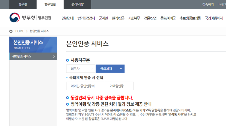 병무청에 들어가서 입대 신청하려니 본인 인증에 어려움이 있습