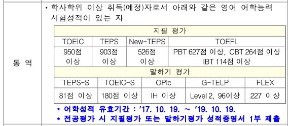 통역장교 선발시험 어학점수가 필요하다던데, 요건이 어떻게 되나요?