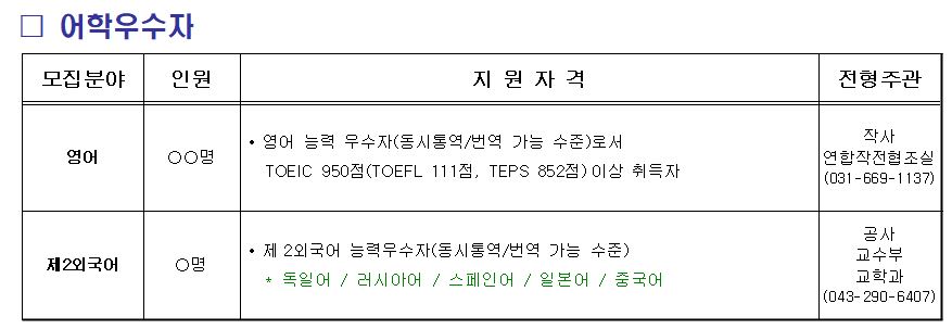 토익 950점/ 텝스 903점/ 토플 IBT 114점 이상