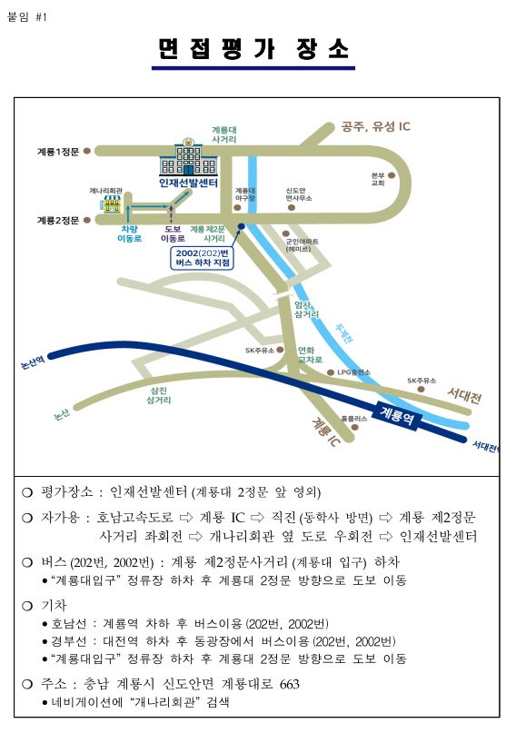 ㅇ 평가장소 : 해병대사령부(경기도 화성시 봉답읍 시청로 1311)
