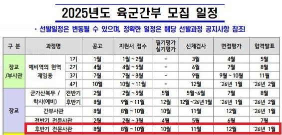 2025년 하반기 영어 어학병 일정이 궁금합니다. 올해 10월~11월 입영 희망합니다.