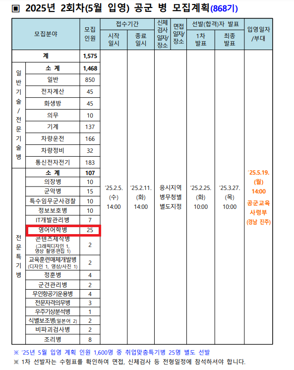 공군어학병 (25-2회차) 선발시험 공지가 나왔습니다.