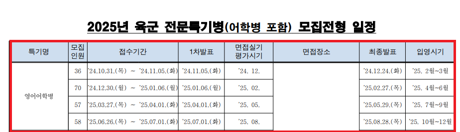 | 2024년 12월 육군어학병 선발시험 합격수기8 (OO원) (0) | 2025.01.20 |