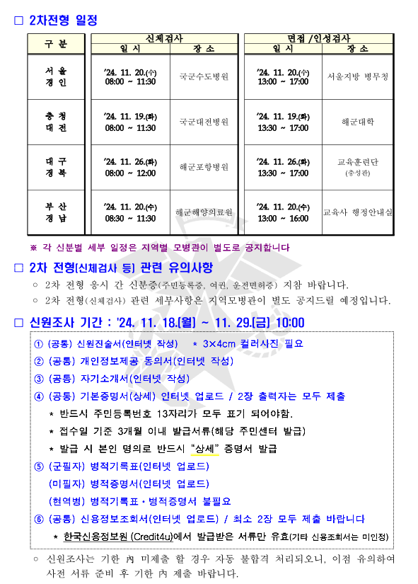 2차전형이 10. 21.(월) ~ 11. 1.(금) * 각 지역별 일정 확인 필요