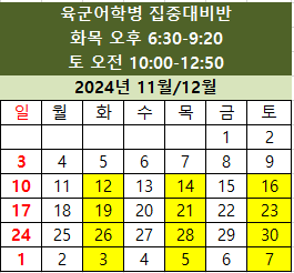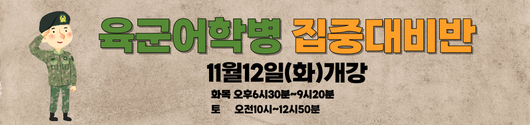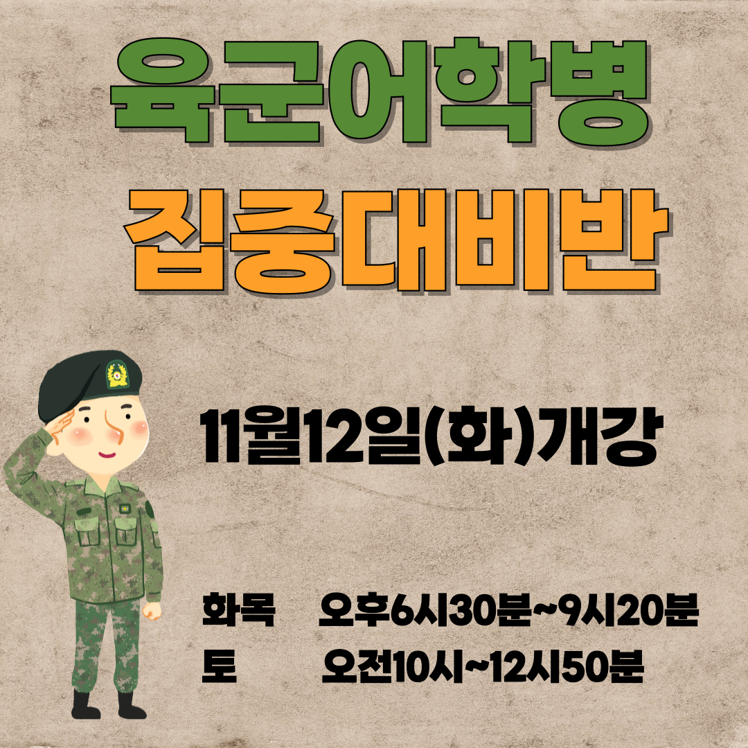 | 육군어학병 2024년 12월 선발시험 공지 (지원접수 10/31-11/5, 통역시험: 12/12(목), 36명 선발) (1) | 2024.10.24 |