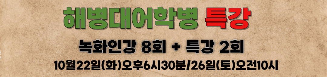 어학병 녹화강의 8회와 2회의 해병대특강이 제공됩니다.
