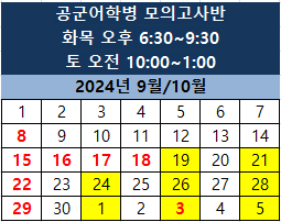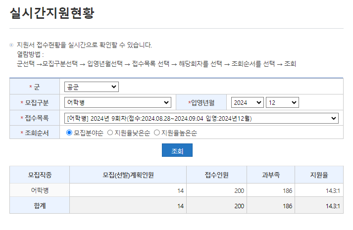 | 공군어학병 2024년 9회차 실시간지원현황 (지원접수 8/28-9/4) (2) | 2024.09.01 |