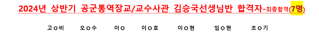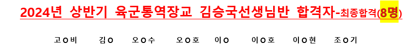 | 최종 합격자 발표 | '25. 1.17.(금) | ・인터넷 "육군모집" 홈페이지 공지 | ||
