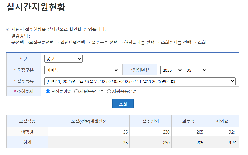 | 공군어학병 2025년 2회차 실시간지원현황 (접수 마감 2/11) (0) | 2025.02.05 |