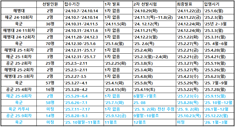 6. 이후 공군병 계획, 해군병 계획 등은 내년도 입영 대상, 연간 계획인 10월 중순 이후 병무청 공지가 나올 것으로 예상합니다.