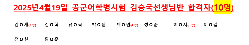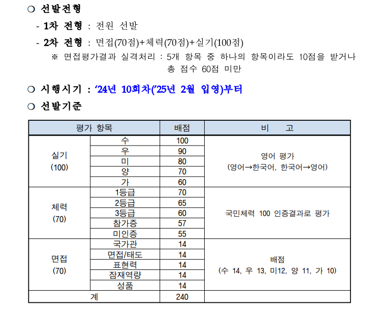4. 공군 영어어학병 9회차 (선발인원 14명) 지원 접수 8/28~9/3. 2차 선발 시험 일정은 8월 20일 즈음에 선발 공지가 나오면 알 수 있습니다. 공군어학병 1차는 출결 10점, 가산점 15점, 합산 25점 만점에서 고득점자순으로 서류전형으로 선발을 진행하고 있으니, 가산점을 미리 확인해주시기 바랍니다.