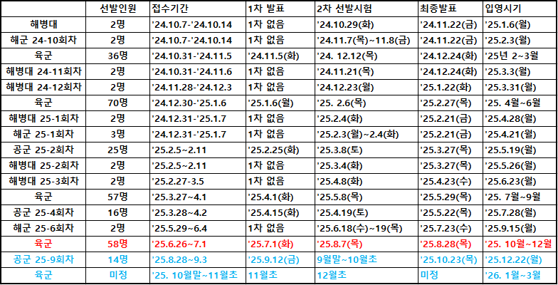 (정확한 일정은 병무청 선발공지가 나오면 확정이 됩니다.)