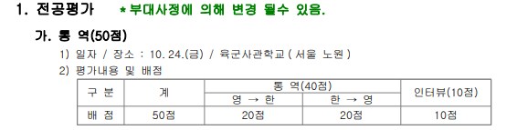 2025년 하반기 통역장교 선발 시험 일정 (2025.9.12 updated)