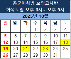 공군어학병 모의고사반 수업 (25/10월 시험대비)이 10월 18일(토)에 4회차 수업으로 개강합니다.