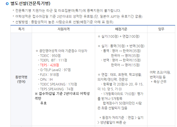 병무청 홈페이지에서 모집안내 육군 어학병 부분에 명시되어 있습니다.