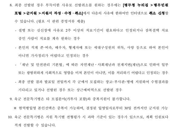 부득이한 사유로 선발 취소를 원하는 경우, 아래 사유에 한하여만 취소 신청 가능합니다.