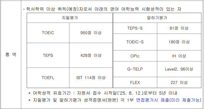 | 통역장교 선발시험 지원요건 (7) | 2025.08.15 |