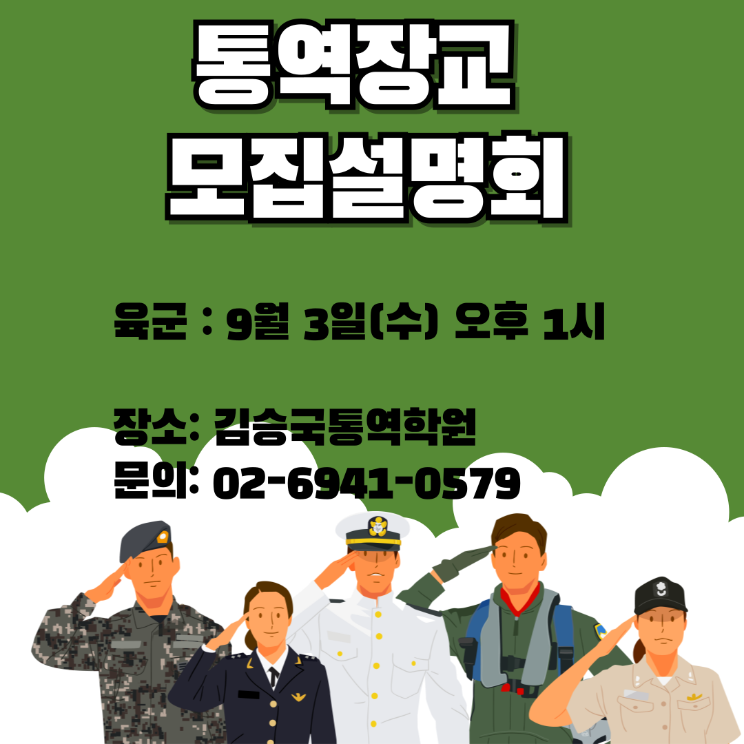 | 육군 통역장교 모집 설명회: 9월 3일(수) 오후 1시 (1) | 2025.08.28 |