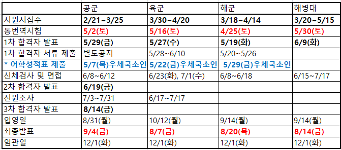 | 2024년도 육군어학병, 공군어학병, 해군통번역병 모집일정 (영어어학병) (0) | 2024.03.21 |